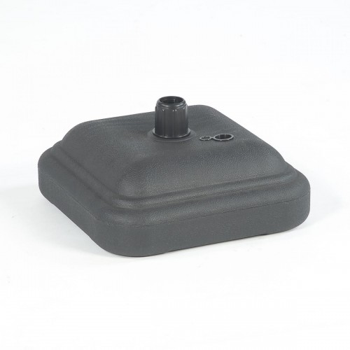 A 12l water base made of black plastic, 35cm x 35cm x 13cm. Designed to provide stable support for parasols and other outdoor structures.