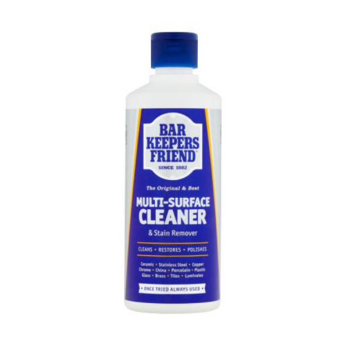 Bar Keepers Friend 250g - Original & Best Stain Remover & Multi Surface Cleaner Versatile powder cleaner and stain remover. Cleans and easily removes stubborn household stains that other cleansers cannot touch. This powerful product was first used in the Wild West - hence its unusual name - and has been around for over 100 years. Liquids work on some stains, creams do better, but for really stubborn stains nothing compares to Bar Keepers Friend! Can be used on: - Work surfaces: to clean and remove stains caused by tea, coffee, fruit juice, felt tip etc - Ceramic & stainless steel sinks & basins: to remove dirt, stains, soap scum and limescale China & glassware: to remove tea and coffee stains etc. - Cookers: to clean ceramic hobs and glass oven doors - Cookware: to remove baked on food and rust - Chrome, plastic, formica, tiles, grout, copper and brass Bar Keepers Friend is recommended by Wedgewood & Corian. To use just sprinkle onto a wet cloth, rub lightly and rinse, dirt and stubborn stains disappear.
