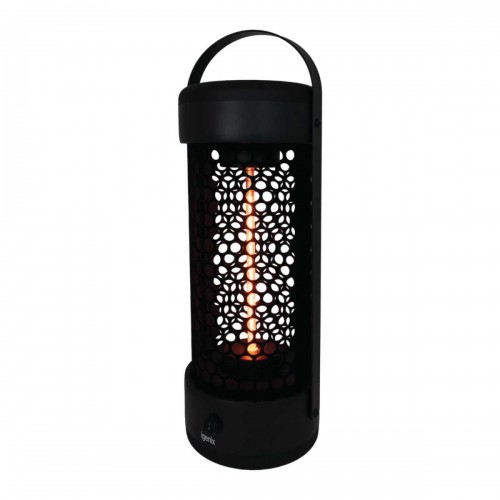 Power: 1200W. Water rating: IP55. Automatic tip-over protection. Heat resistant handle. Heat resistant safety mesh. 3m power cord. Low glare halogen tube. 360° heat distribution. One touch switch. Stable base with fixing brackets.