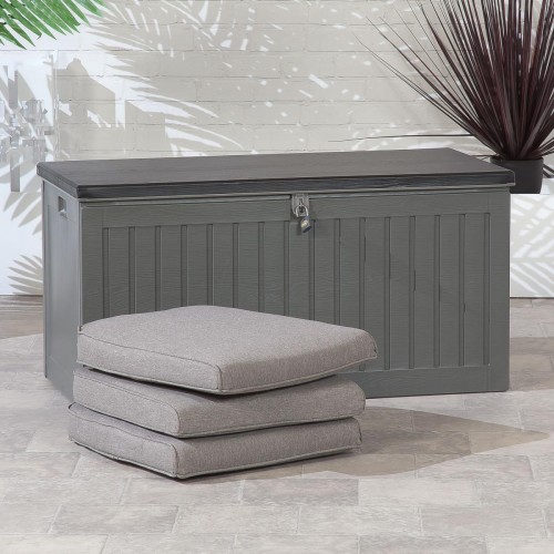 Black Lid with Wood effect & Grey Body. Strong, Durable & Sturdy PP Vacuum. Indoor & Outdoor Use. Capacity: 270L. Size: 1090x513x547mm